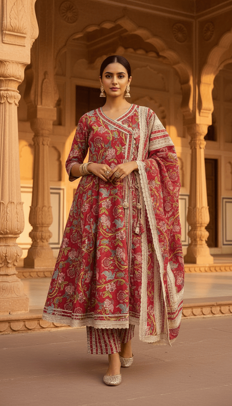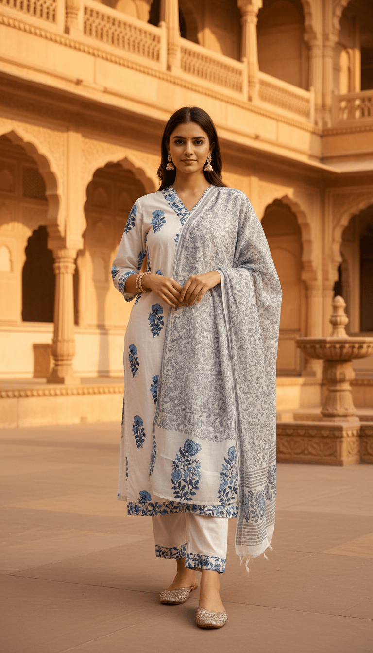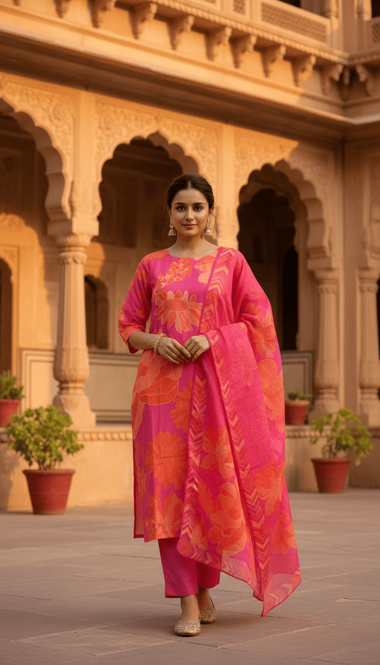 Beautiful Pink Dupatta Salwaar Suit Set with blue Kurta