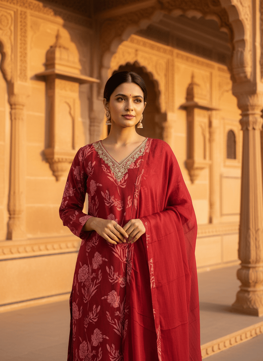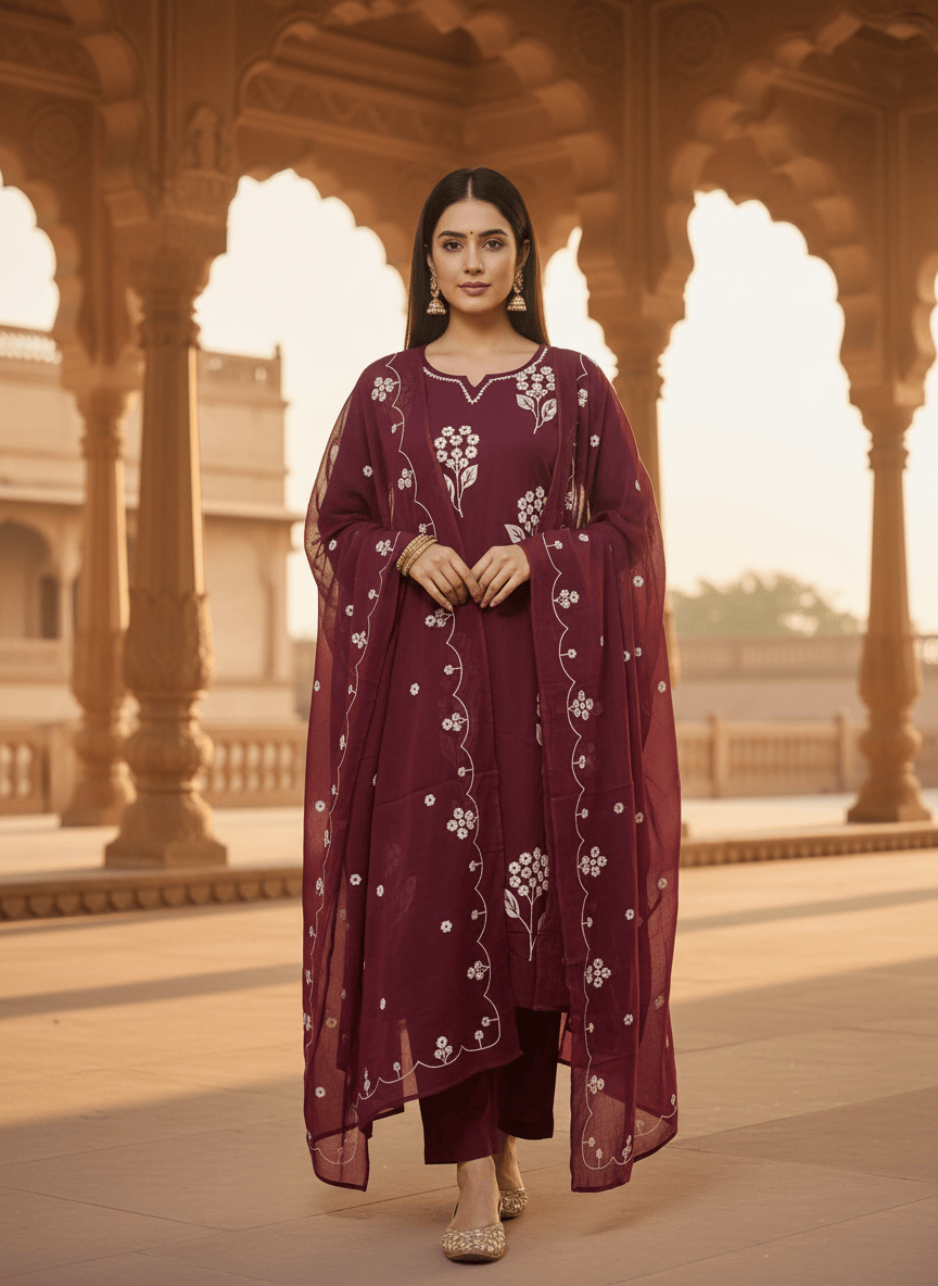 Yellow Embroidered Salwaar Suit & Dupatta Set