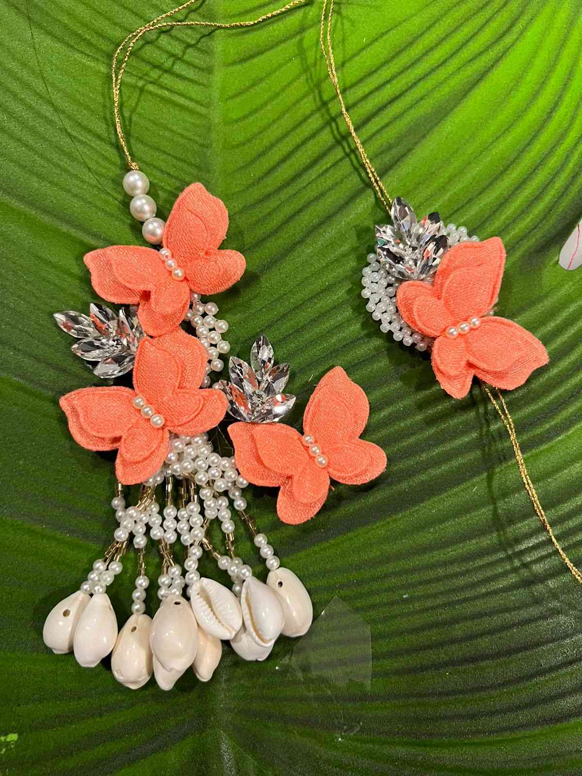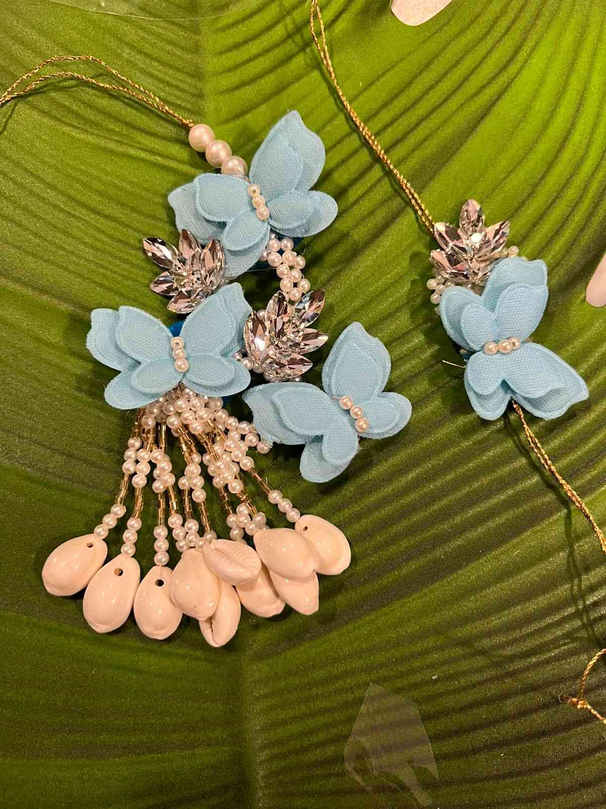 Trendy Butterflies couple set with crystal leafs & kaudi /shell hangings